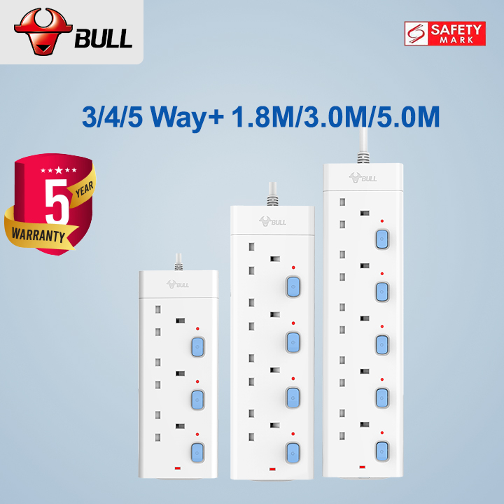 3/4/5 Way Extension Socket (1.8/3.0/5.0 Meters Cable)