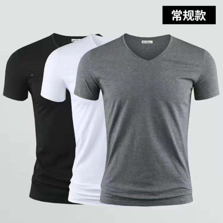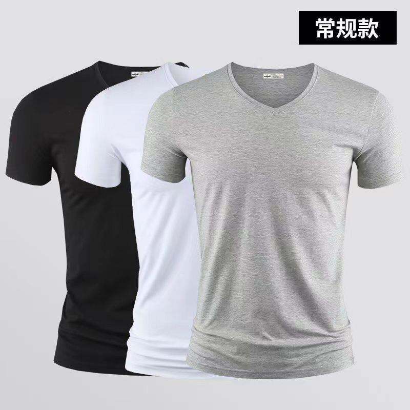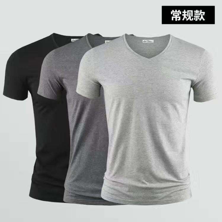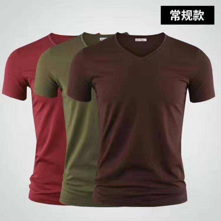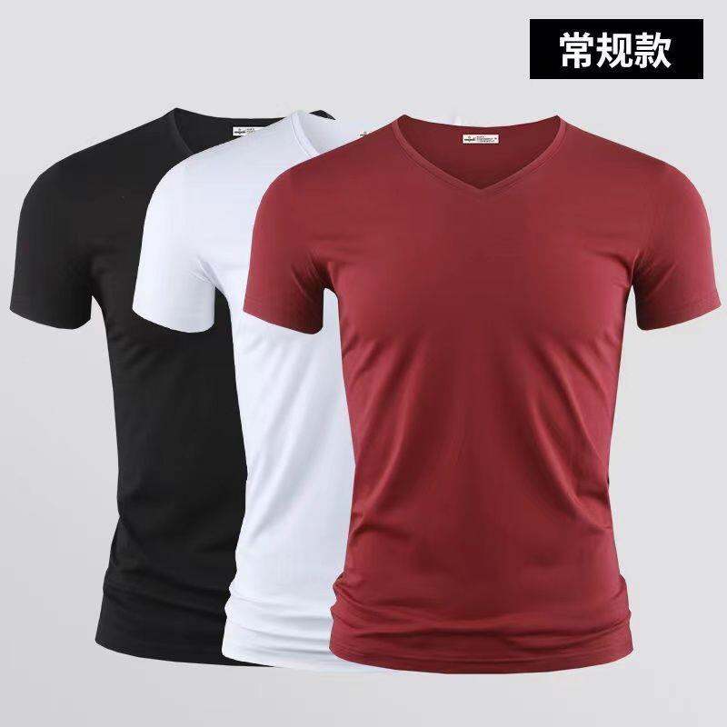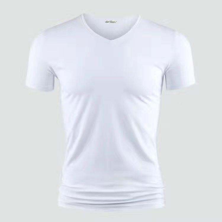 3vyy New Trendy Short Sleeve Pure Men's V-neck Half Underwear Undershirt T-shirt Body Sleeve Ice Silk Body Repair T-shirt 1/
