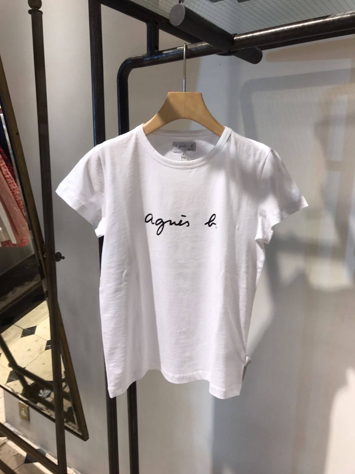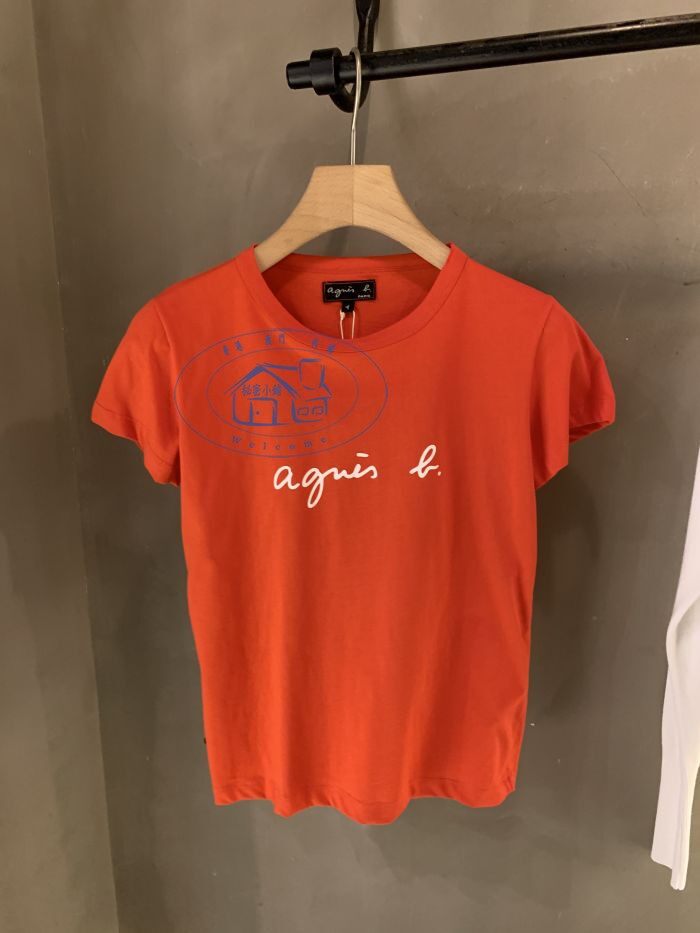 Spring and summer new agnes b cursive PALEESIJA letters pure cotton short-sleeved T-shirt dark blue women's clothing