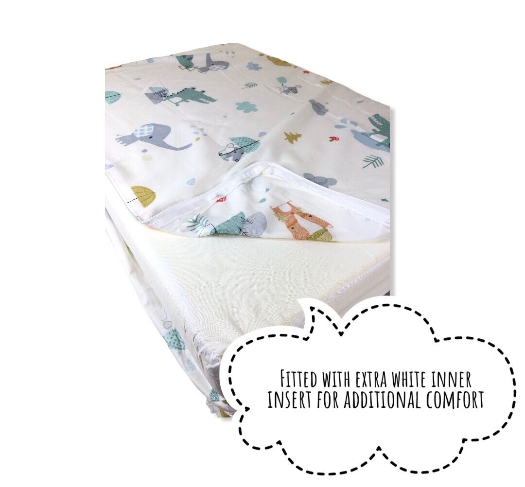 Specially curated with the comfort of your toddler in mind, the kids foldable mattress offers a firm 3 inch foam material fitted with a 100% cotton cute prints to ensure a breathable and comfy touch material for kids. The foam material is made of high density foam material to ensure a firm and comfortable sleep. Each individual foam is also fitted with an additional layer of inner fabric to provide additional comfort. The L-shaped design mattress cover allows you to change and wash the outer mattress cover at ease!