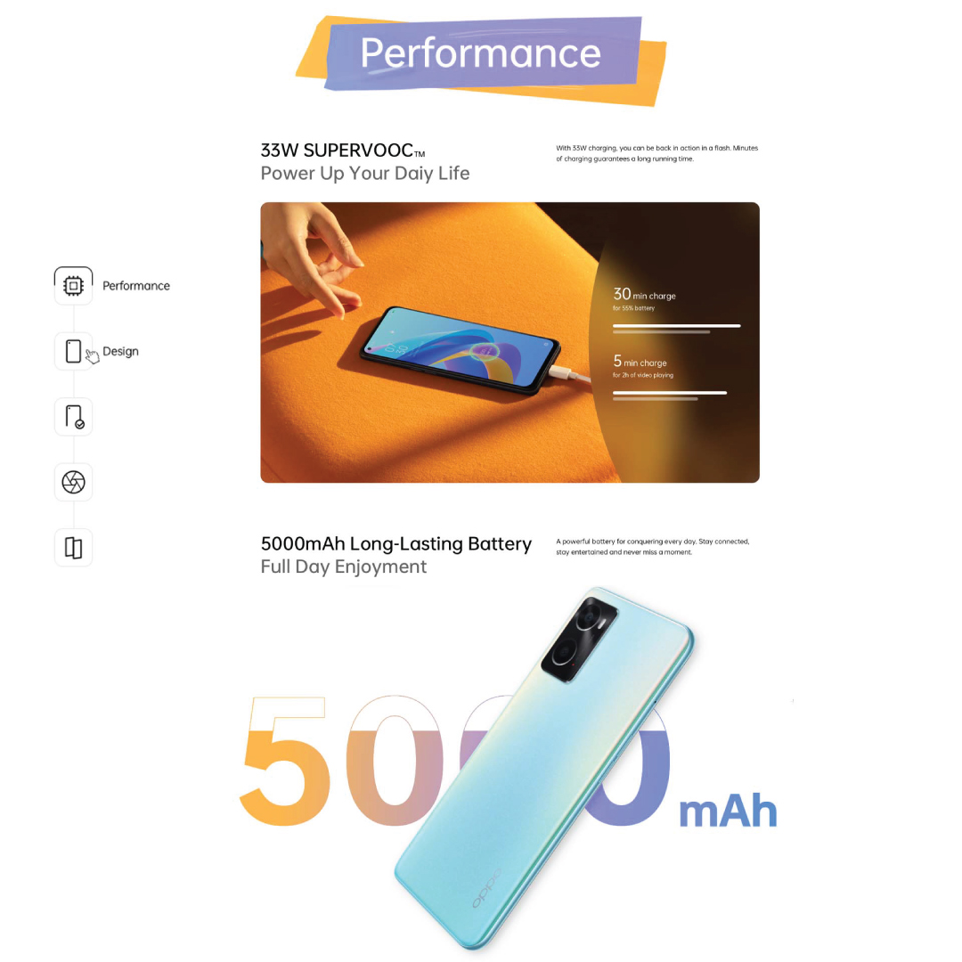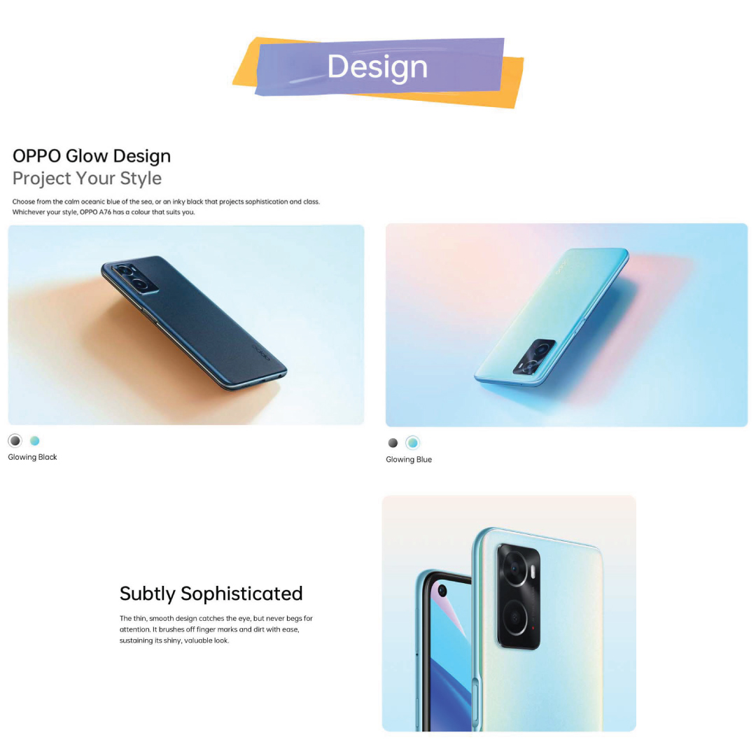OPPO A76 / Portrait Bokeh Camera/ 90Hz Colour-Rich Punch-Hole Display/5000mAh Battery/ 6GB RAM + 128 ROM