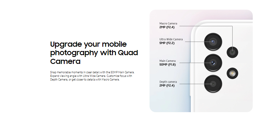 • eMMC 5.1MAIN CAMERAQuad50 MP, f/1.8, (wide), PDAF