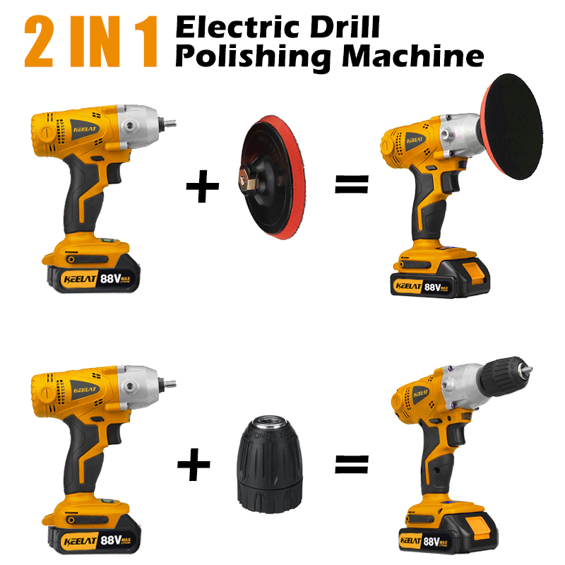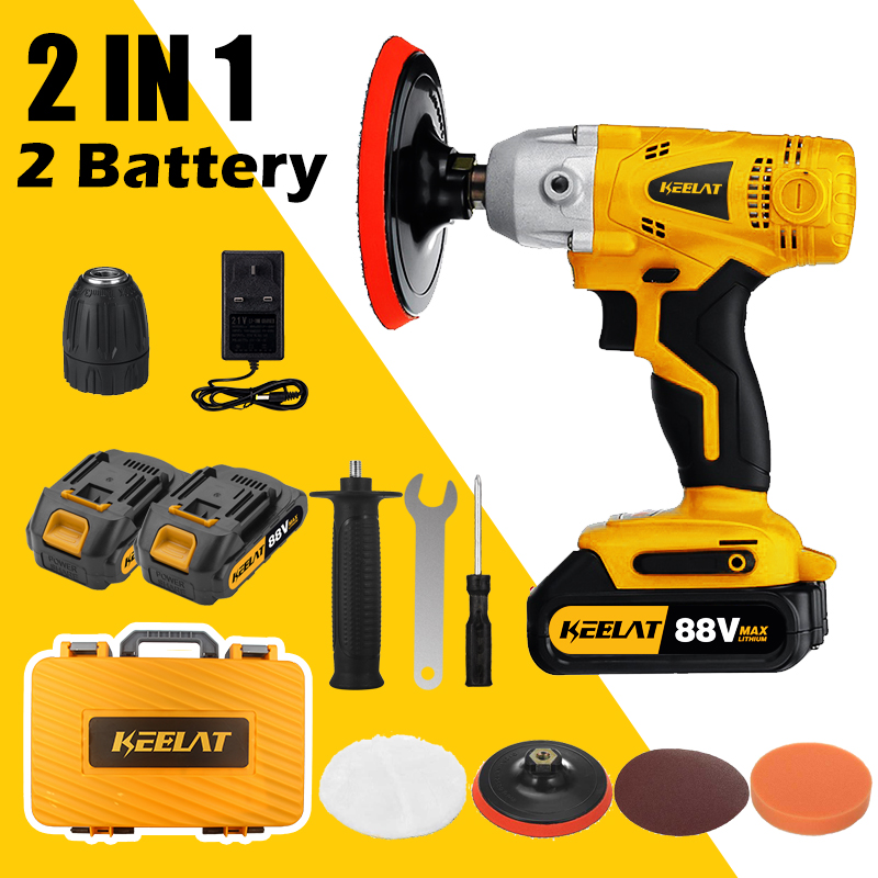 KEELAT 2 in 1 Car Polisher Cordless Electric Drill 800W DIY Mesin Electric Polish Kereta Car Polishing with 5 inch Drill and Polishing Machine Buffer Sander Car Care Sanding Waxing Tools Car Accessori