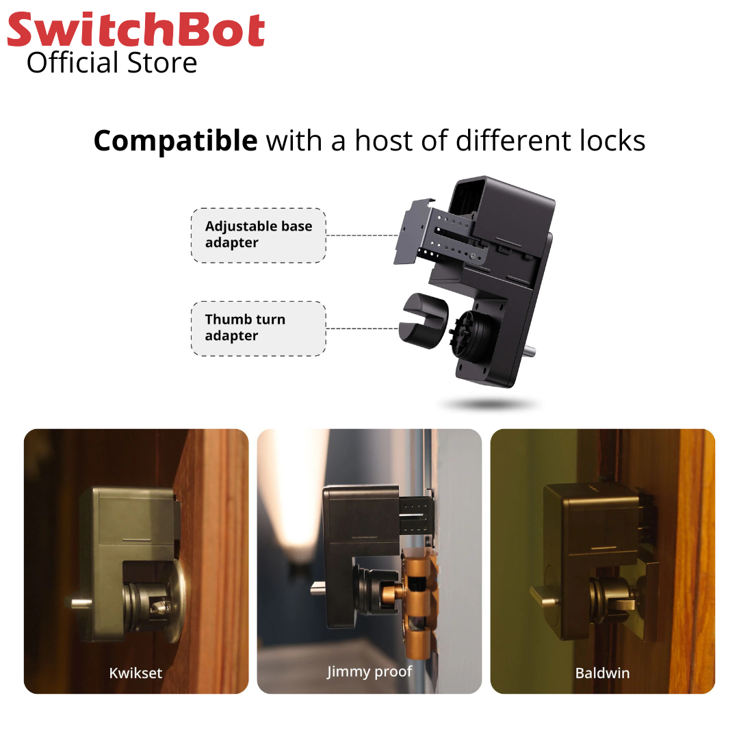 Smarter than your average lock. Whether you forget to lock your door, lose your keys or need to let someone in while you're out, we've got you covered. SwitchBot Lock is designed to make your life simple and help you quickly smarter your original door lock. *Before buying, please check if SwitchBot Lock is compatible with your original door lock and if it can be used with your smartphone or Apple Watch.