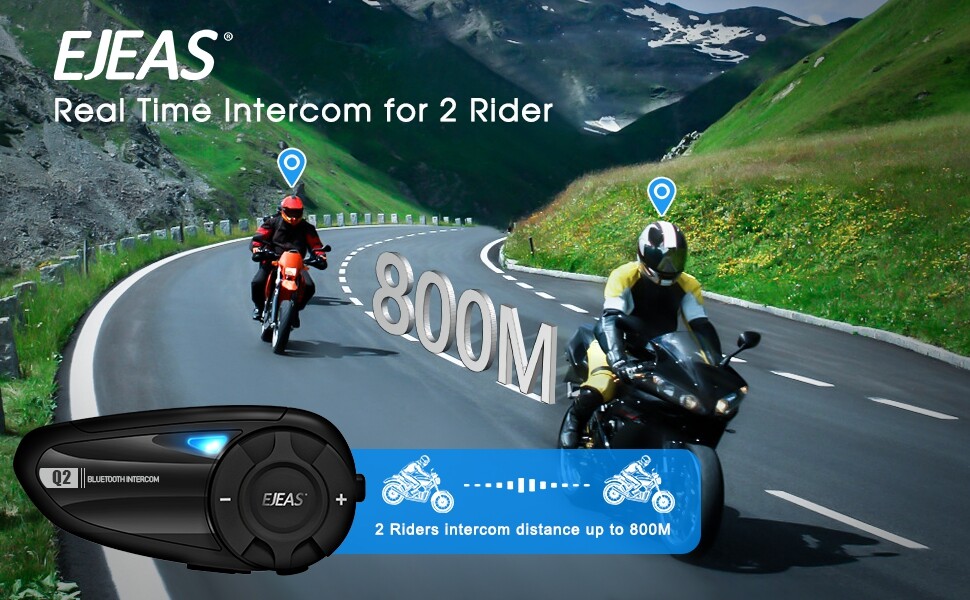 EJEAS Q2 Motorcycle Helmet Bluetooth Intercom Headset, 2-rider talk in real time, Bluetooth 5.1 Waterproof 1 Pack