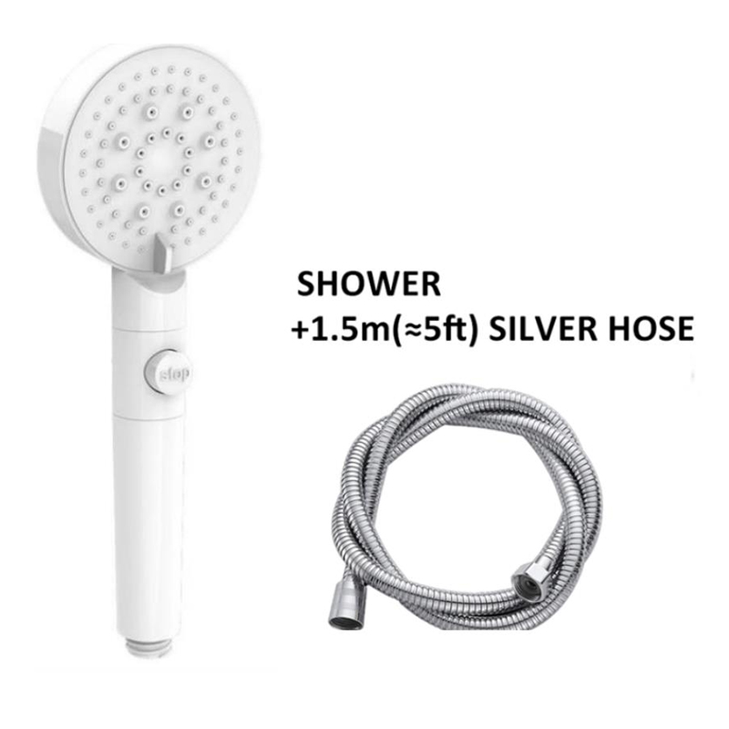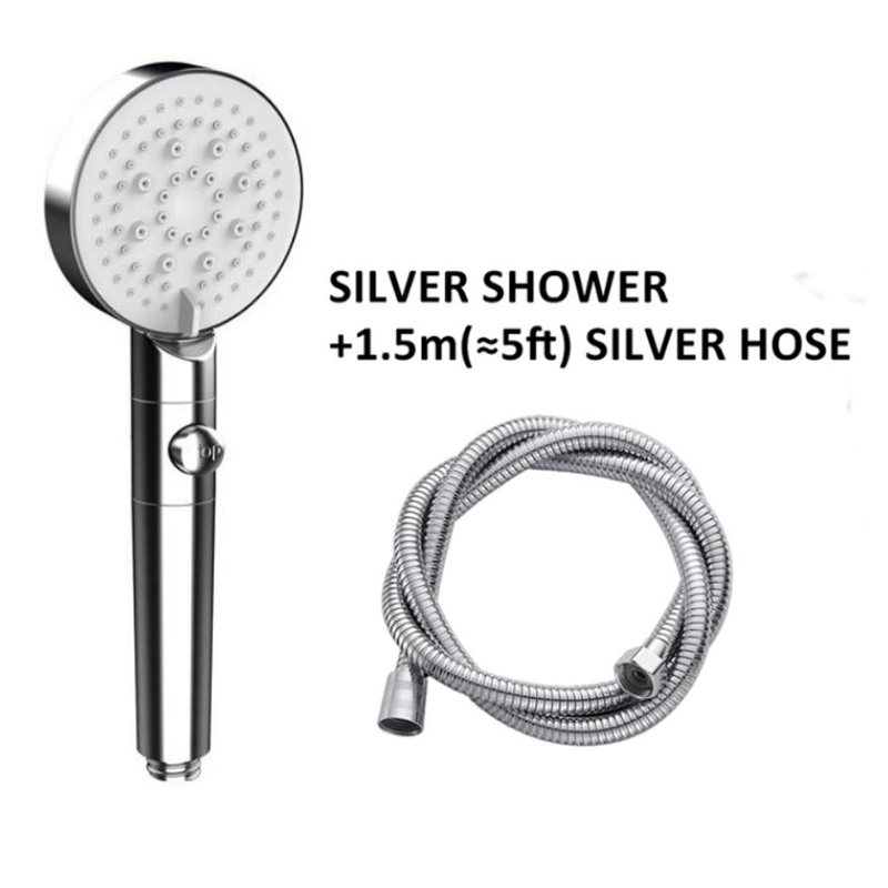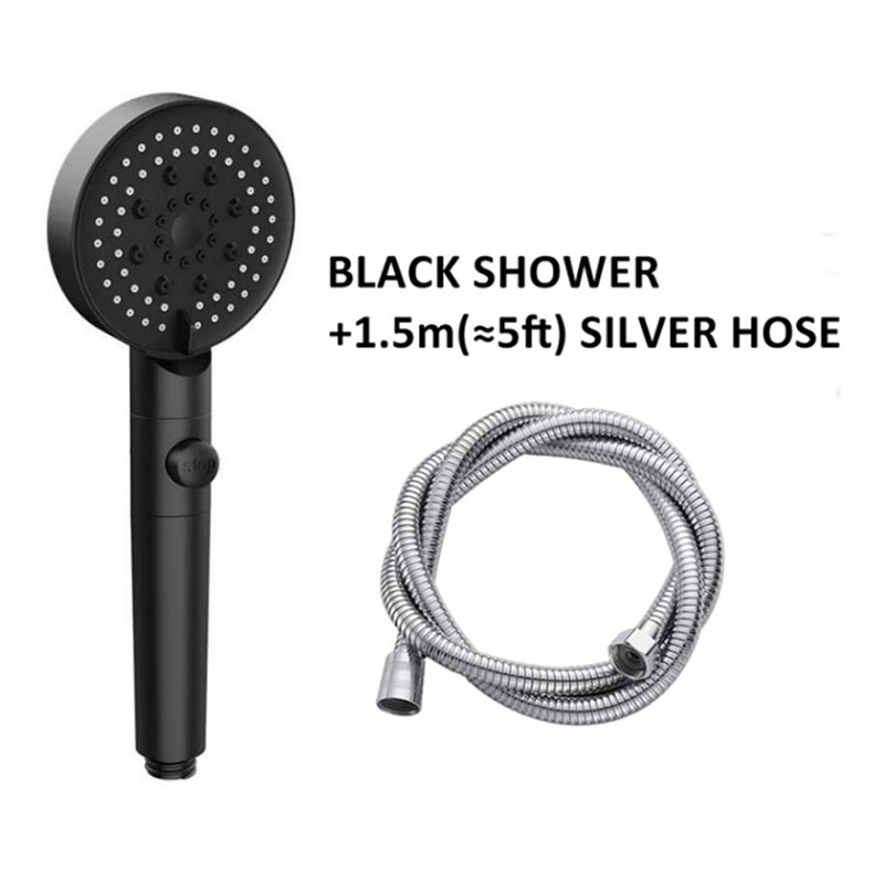 High Pressure Shower Head 5 Modes Adjustable Showerheads with 1.5m Hose Water Saving One-Key Stop Spray Nozzle Bathroom Showerhead Accessories