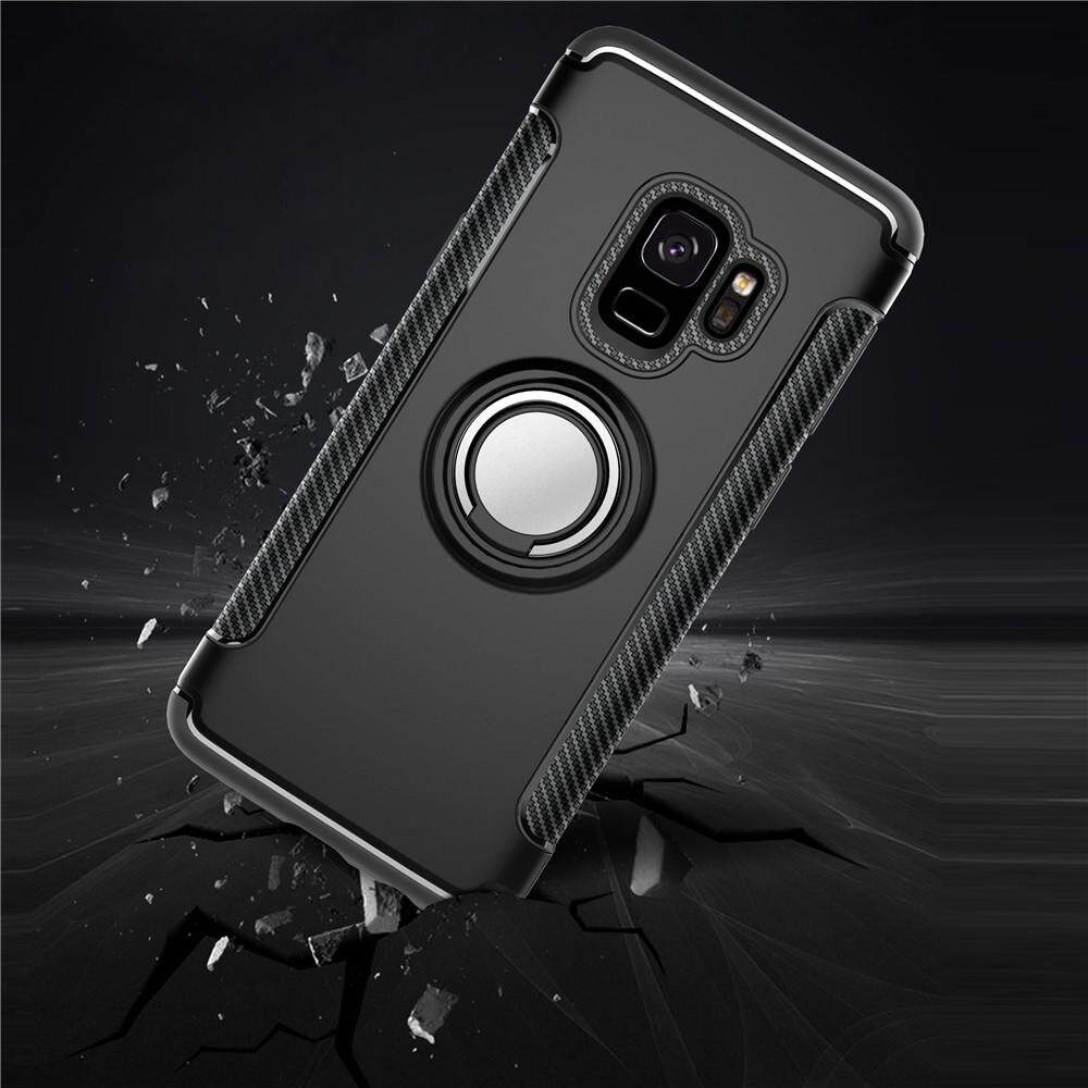 For Samsung Galaxy S9 / S9 Plus Phone Case, Luxury Magnetic Armor Silicone Cover Metal Ring Hard Casing