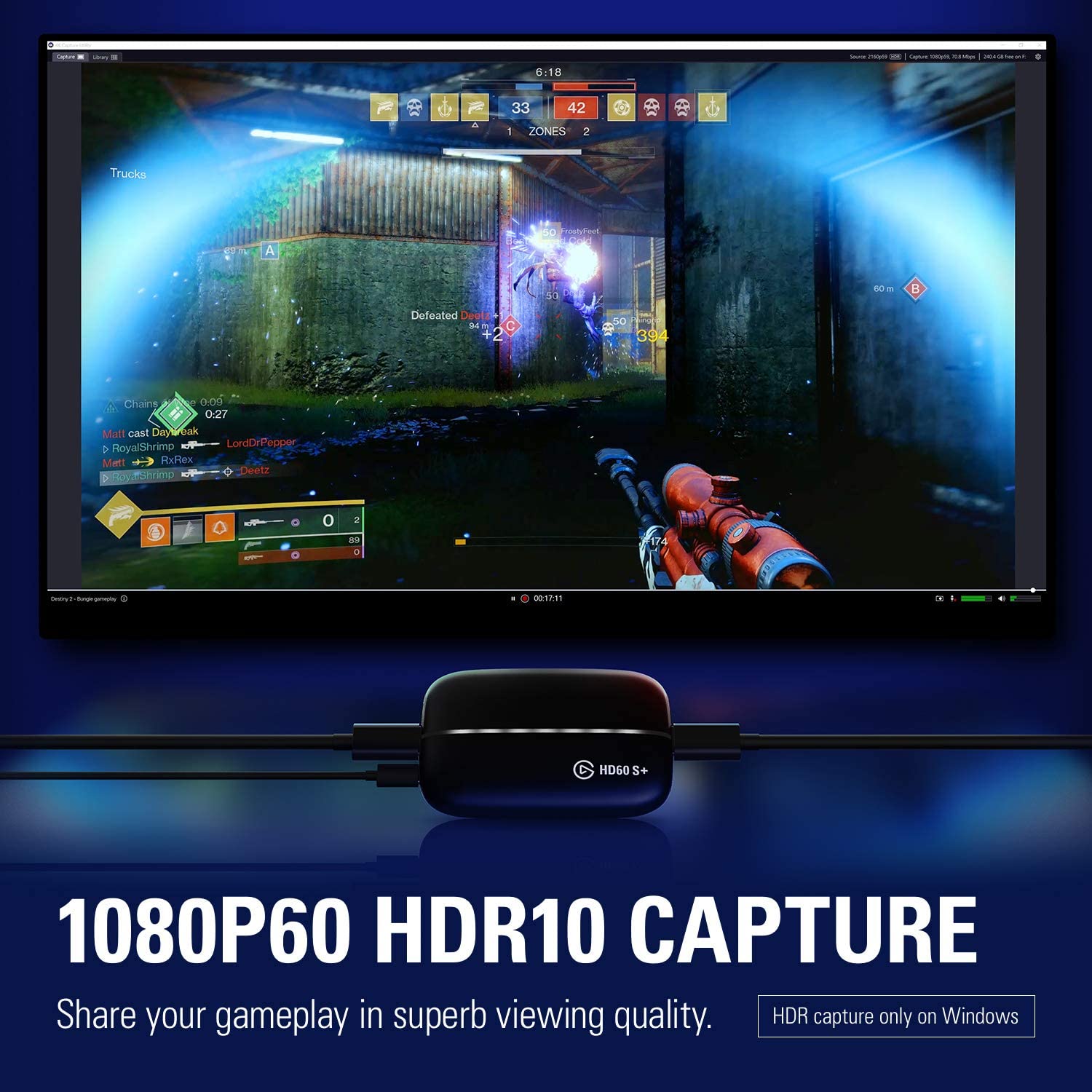 Elgato Game Capture HD60 S+ or HD60 S for PlayStation 4, Xbox One and Xbox 360, or Nintendo Switch gameplay, Full HD 1080p 60fps HD60S or HD60S+
