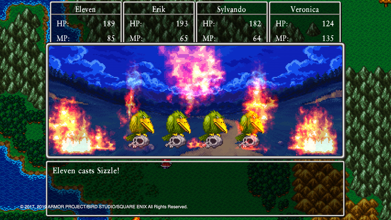 With a ragtag band of adventurers, you’ll engage in well-balanced, turn-based battles and embark on quests across the kingdom of Erdrea. Forge gear, develop party members’ skills, and alter their outfits without changing gear in this edition of the game! This version also lets you ride and attack with monsters on the field to earn experience points, as well as change between HD or 16-bit visuals, symphonic or synth music, and English or Japanese audio. Complete the tale with new character-focused stories, and travel to past DRAGON QUEST worlds!