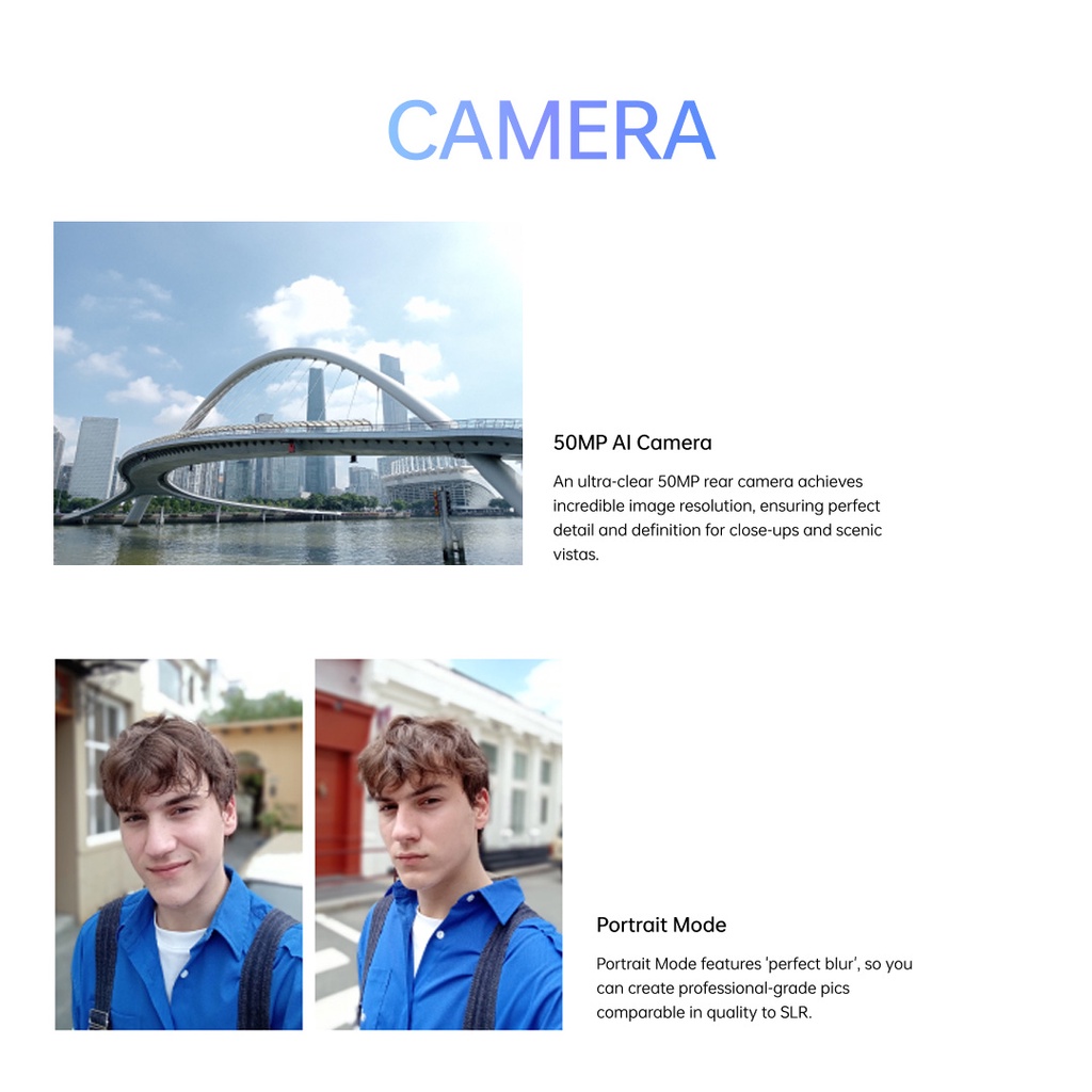 Equipped with 50MP Camera, OPPO A17 provides an awesome portrait shooting experience for photography enthusiasts. Users can capture high-quality images with various imaging features, such as 360° Fill Light, Portrait Retouching, HDR and more.